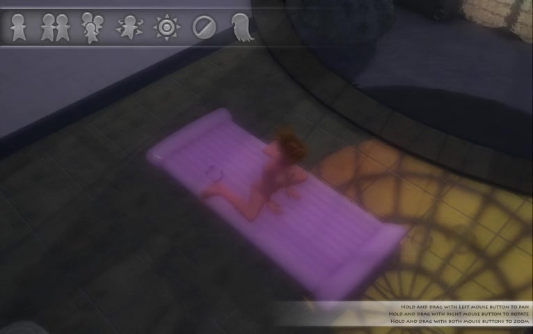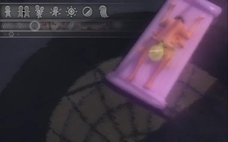 Hentai threesome with a strap-on on an air mattress